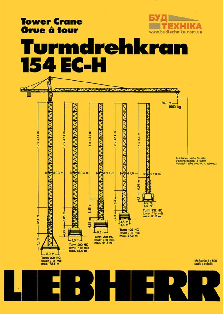 Баштовий кран Liebherr 154 EC-H — верхньоповоротний, продаж в Україні