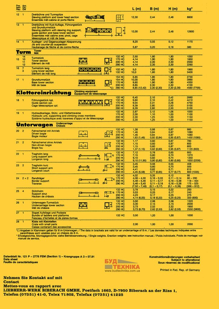 - Комплектуючі та запасні частини до баштових кранів Liebherr